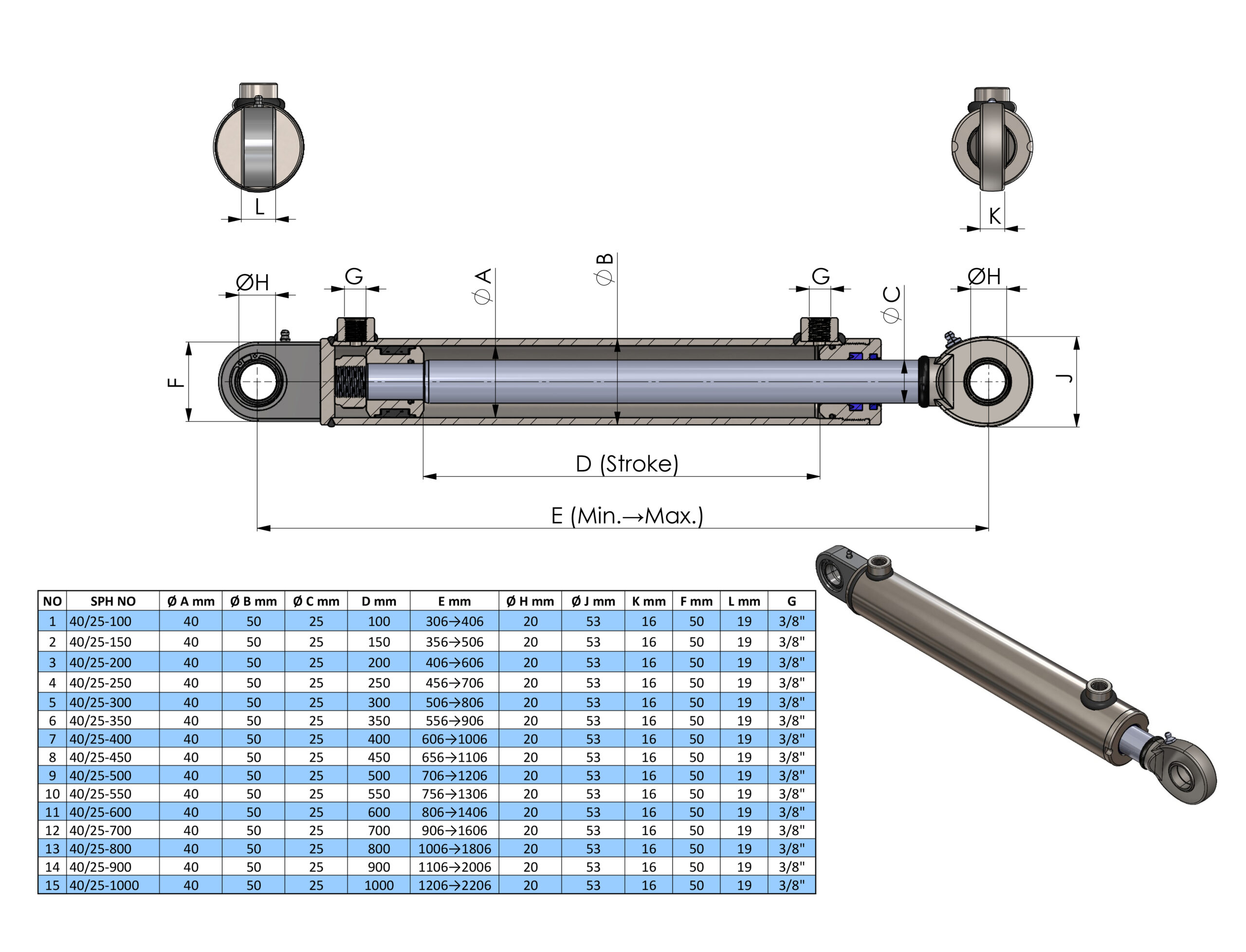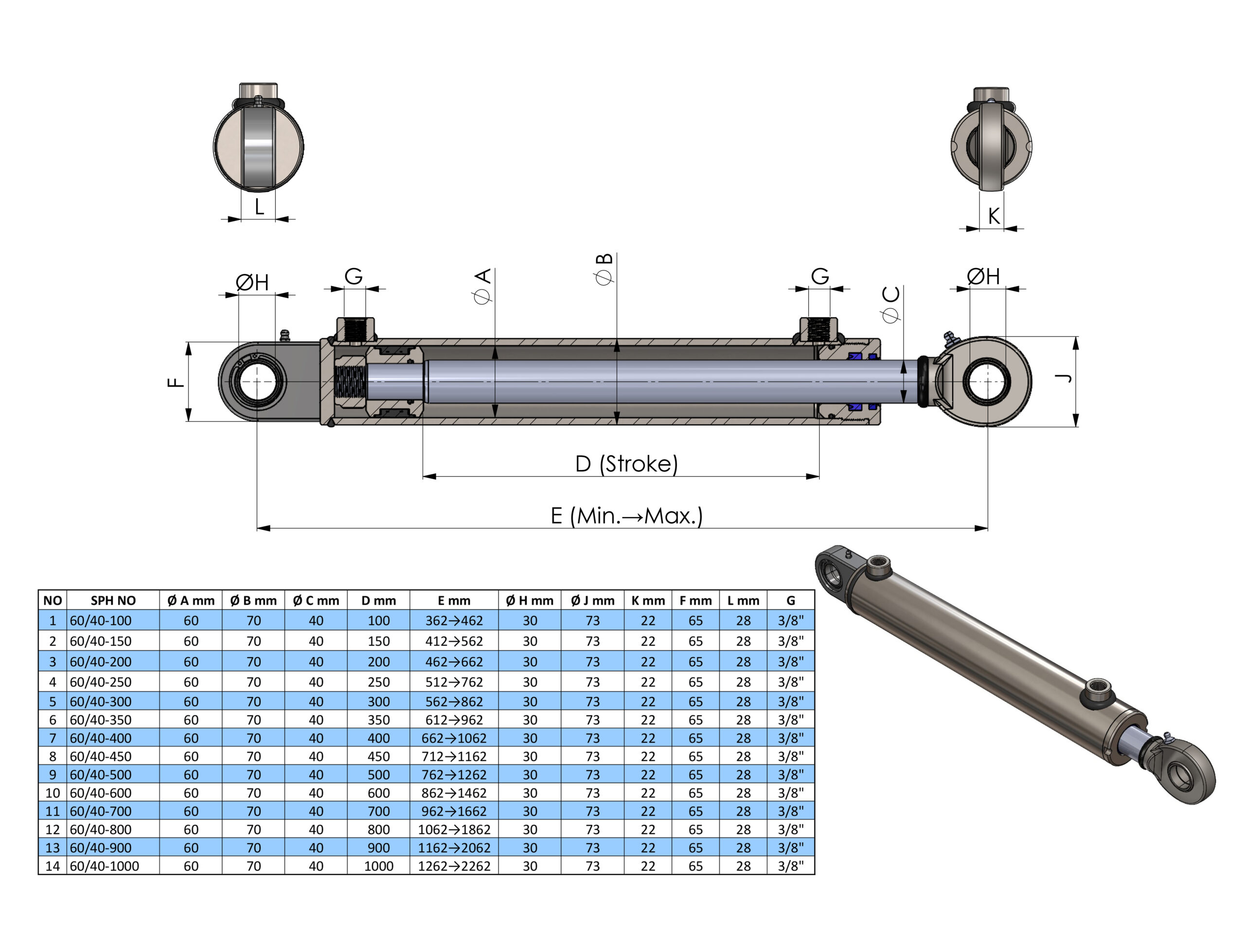 | Cyl Tube and Rod Size: | 40/25, 50/30, 60/40 |