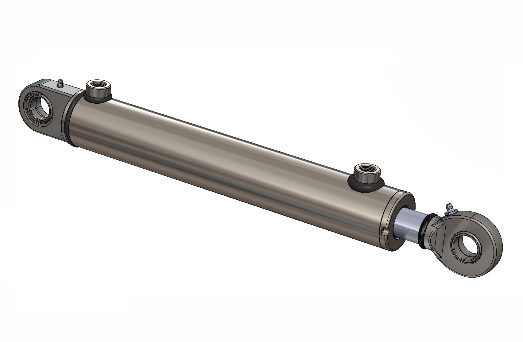 Hydraulic cylinder double-acting with industrial ball joints. 3/8″ ports, piston and rod diameter selectable! Stroke selectable!