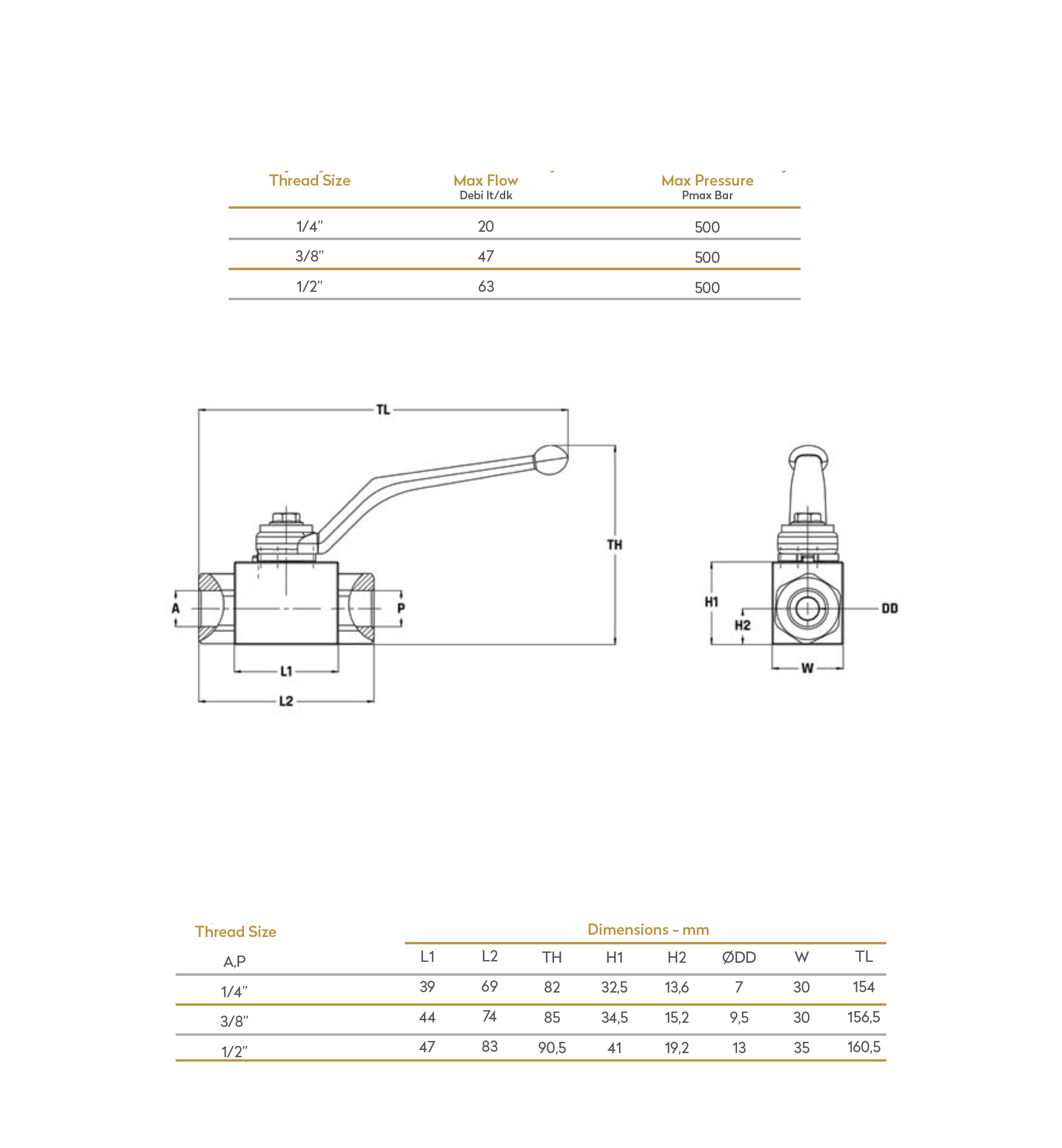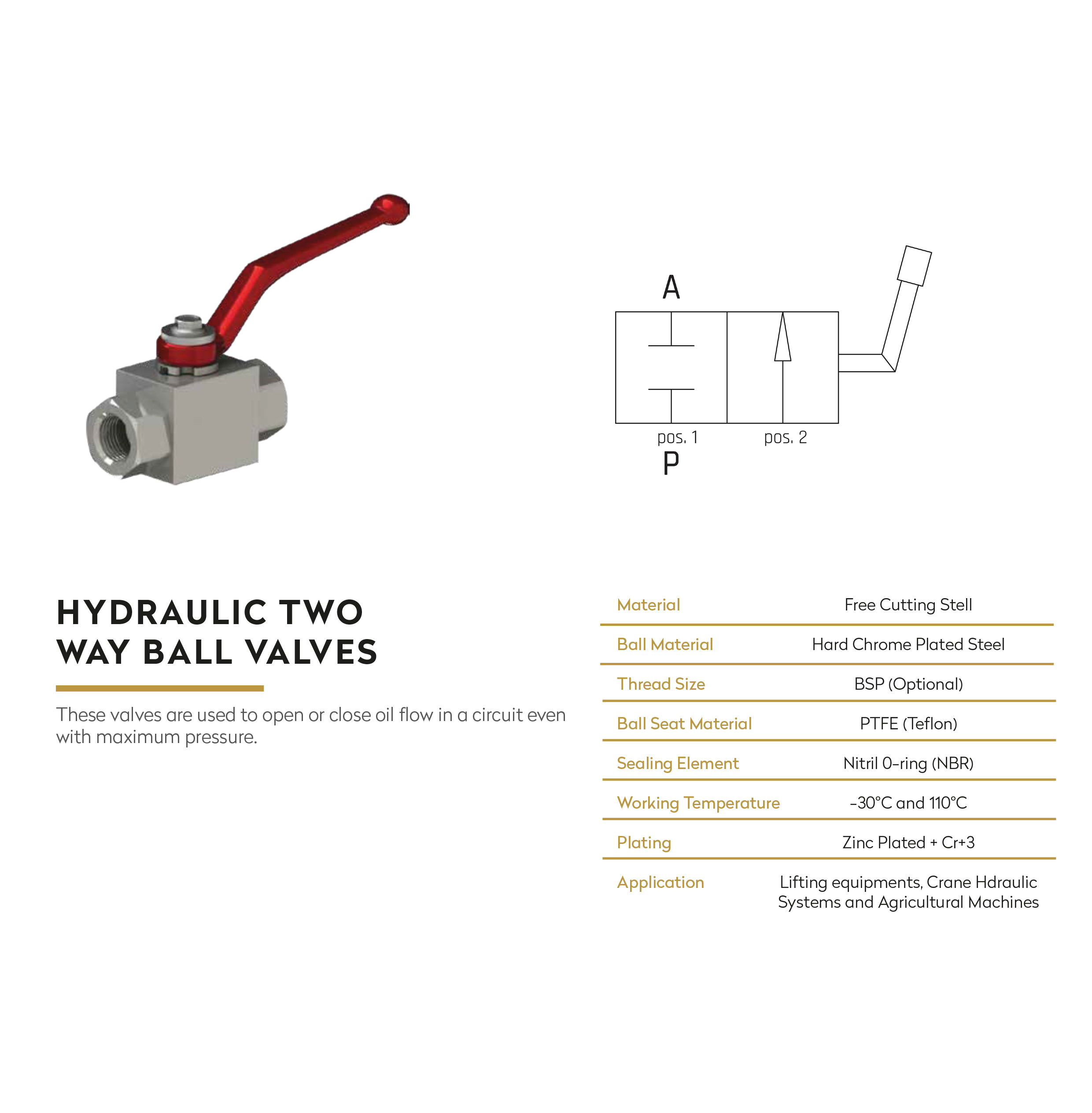 Hydraulic 2 Ways ball valve. Available in different variants.